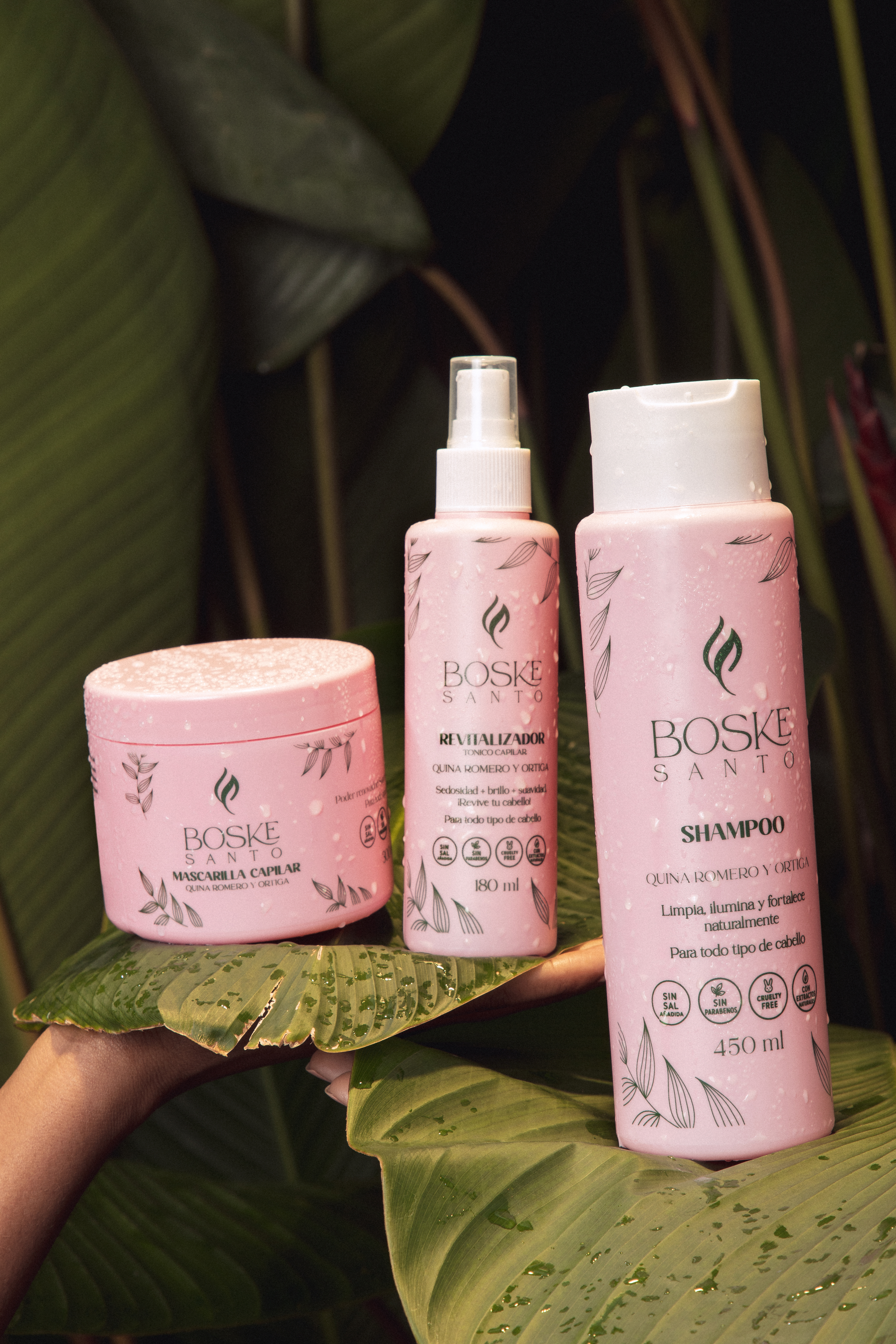 Boske Santo es una marca capilar de origen natural, formulada a base de quina, romero y ortiga, creada para todo tipo de cabello.