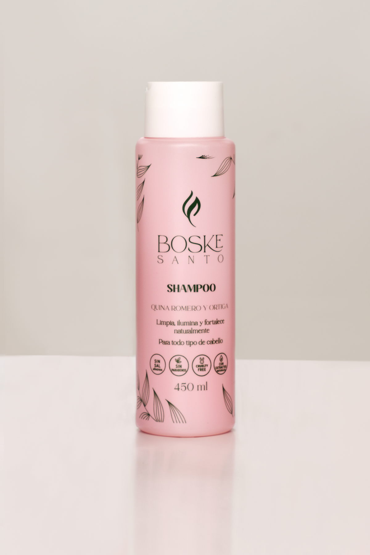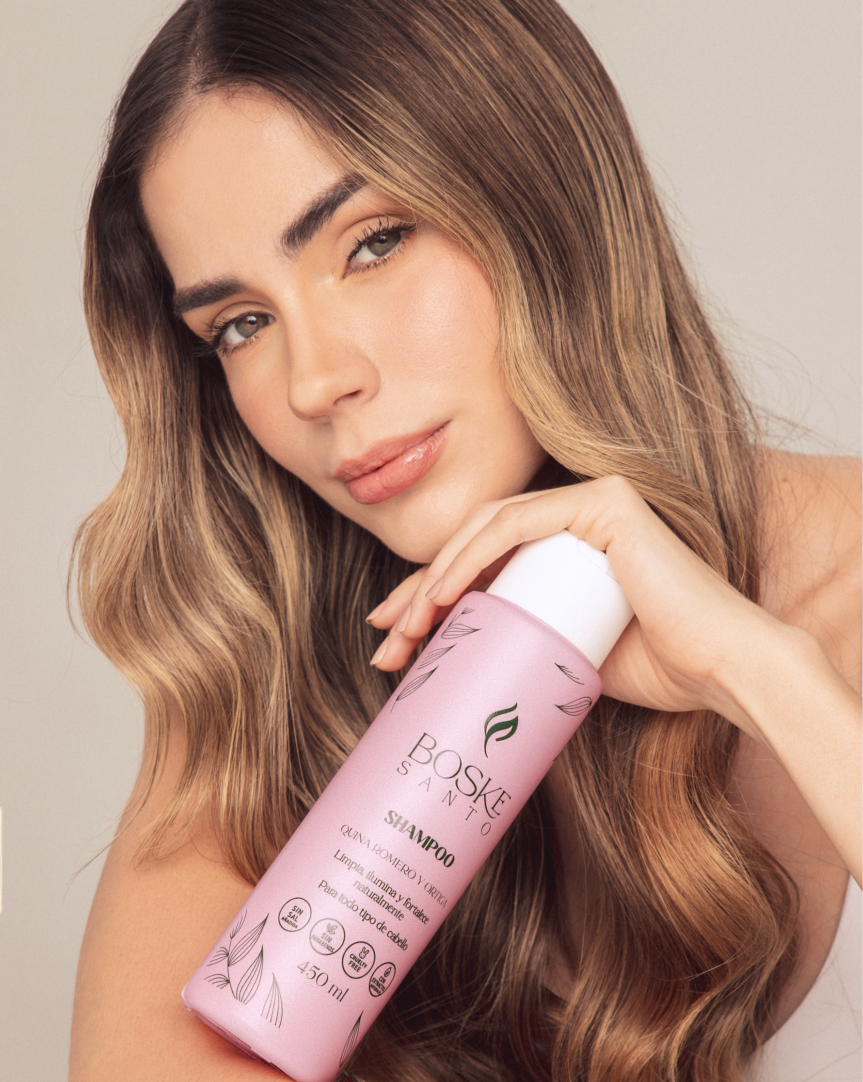 El Shampoo Boske Santo es una sinergia de extractos vegetales que estimula el crecimiento, fortalece desde la raíz y revitaliza el cuero cabelludo, ayudando a prevenir la caída y a mejorar la salud capilar.
